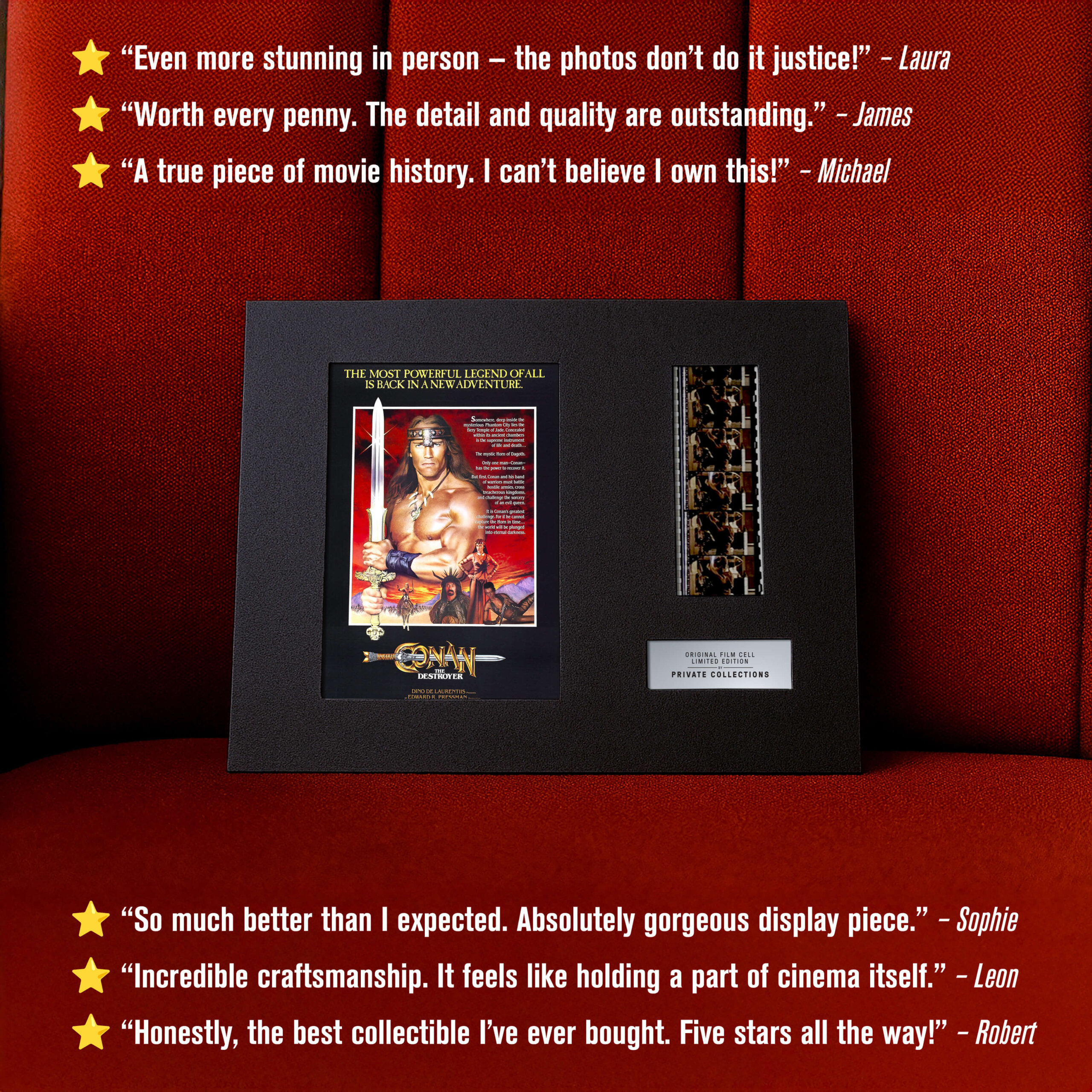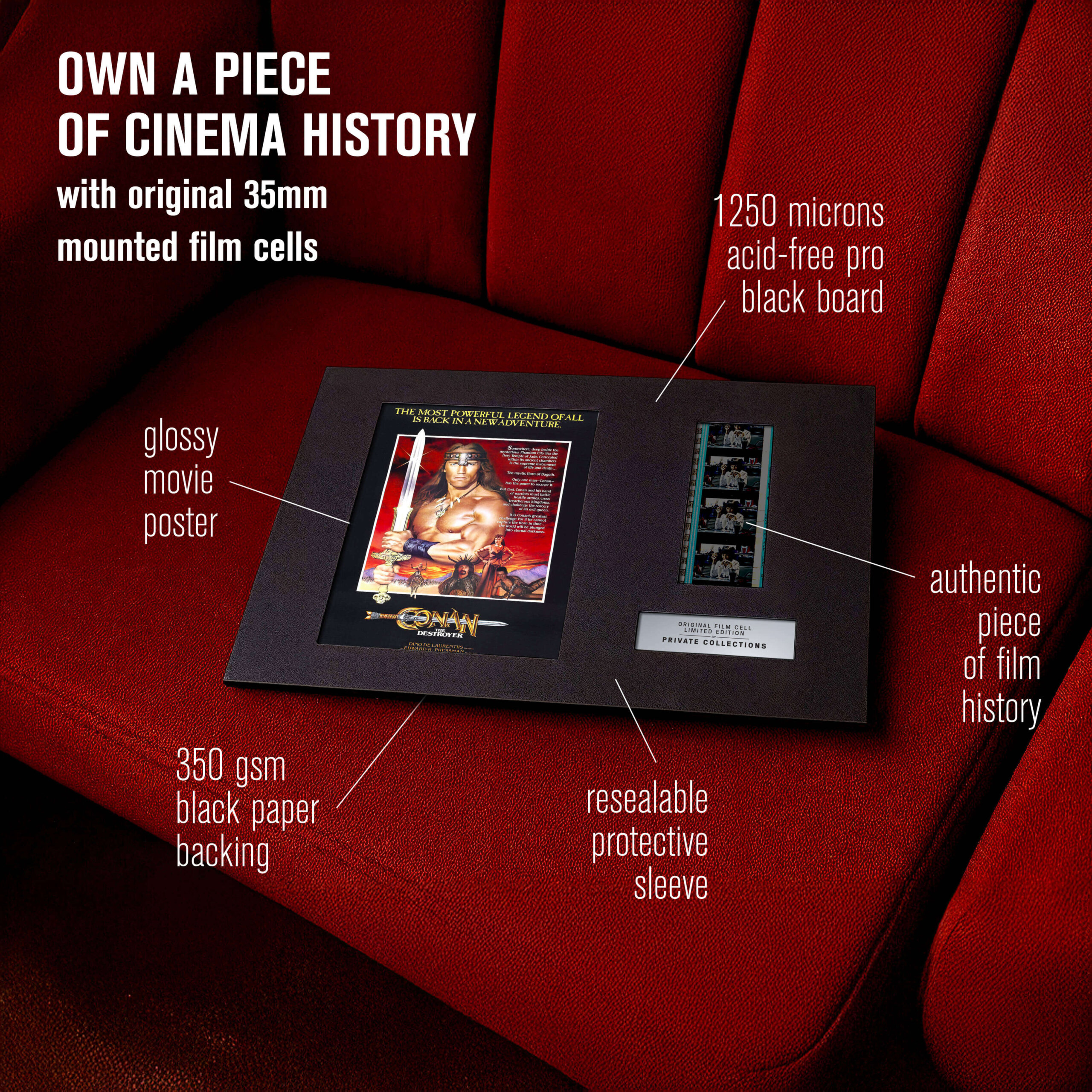 My jsme některé z nich zachránili ze soukromých sbírek a archivů — a dáváme jim nový život. Každý originální filmový pásek je ručně vybraný a pečlivě zarámovaný k vystavení. Není to jen sběratelský kousek. Je to skutečný artefakt filmové historie.