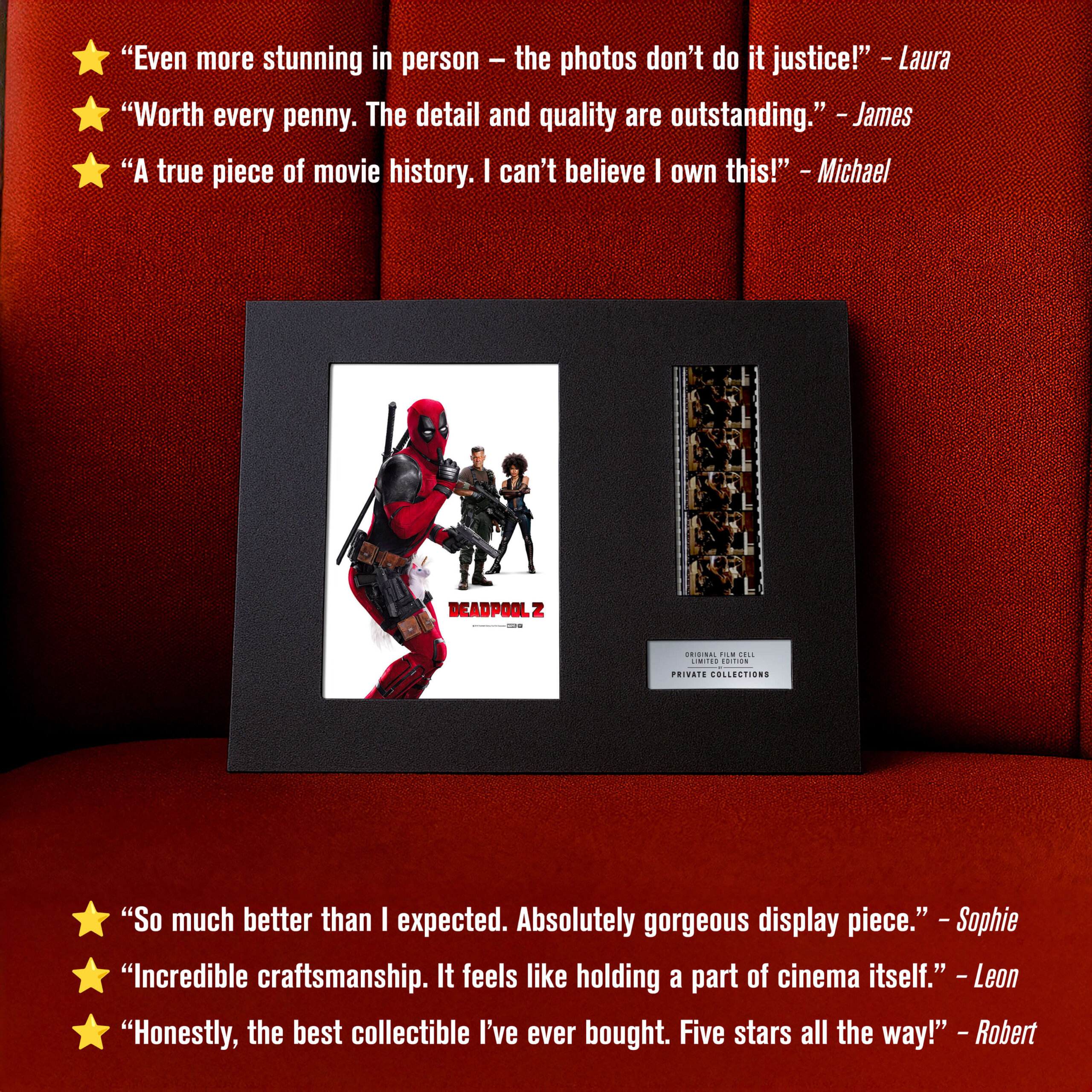 My jsme některé z nich zachránili ze soukromých sbírek a archivů — a dáváme jim nový život. Každý originální filmový pásek je ručně vybraný a pečlivě zarámovaný k vystavení. Není to jen sběratelský kousek. Je to skutečný artefakt filmové historie.