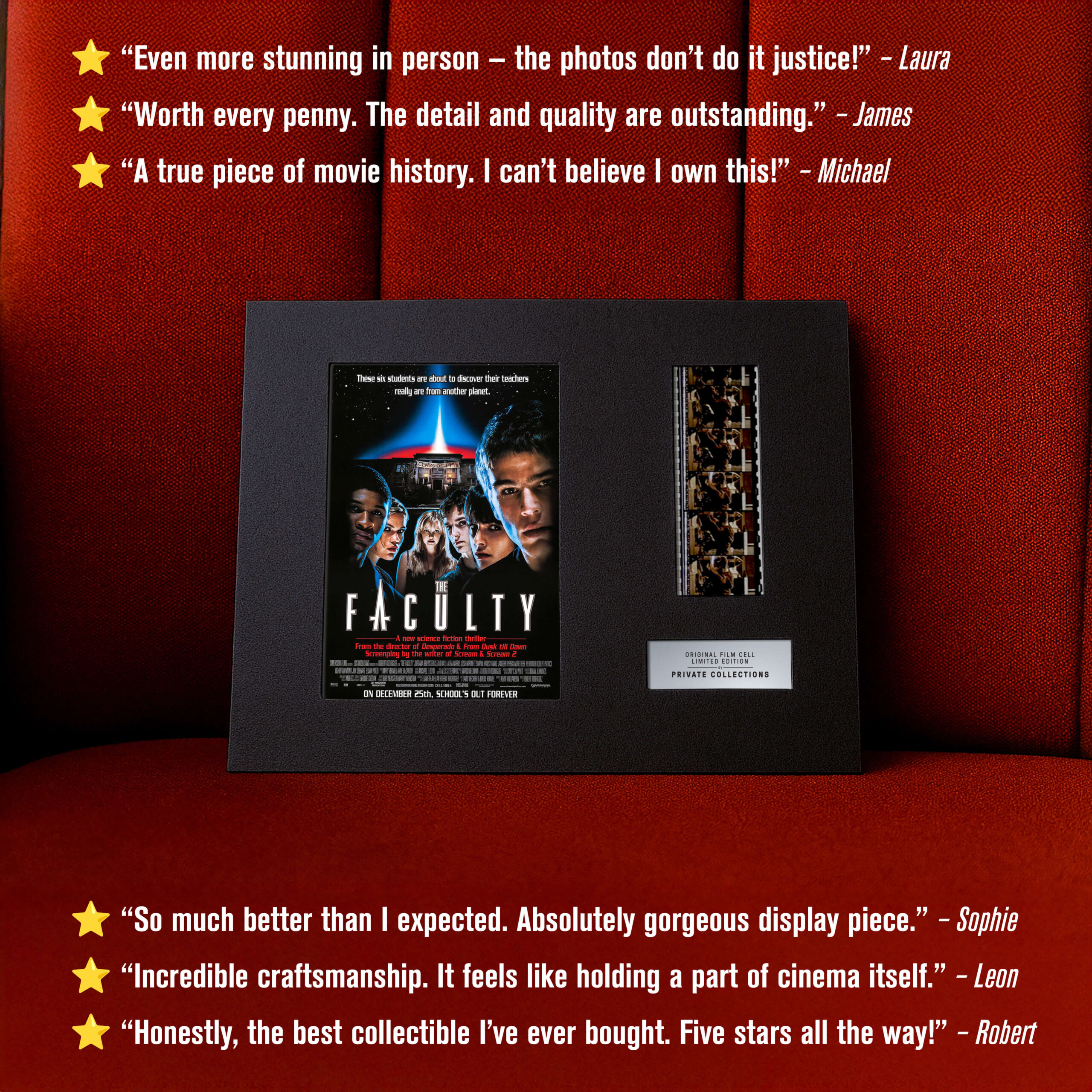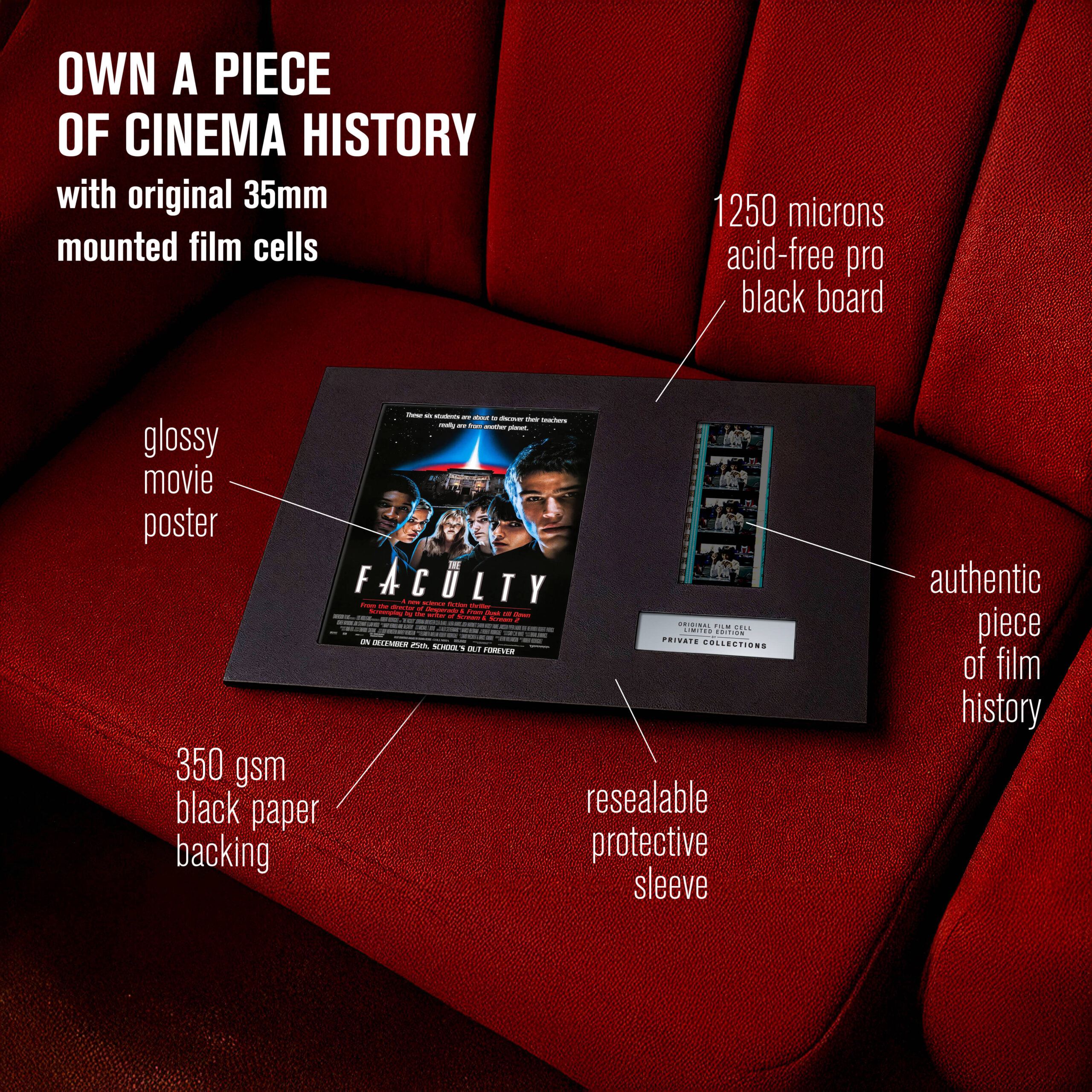 My jsme některé z nich zachránili ze soukromých sbírek a archivů — a dáváme jim nový život. Každý originální filmový pásek je ručně vybraný a pečlivě zarámovaný k vystavení. Není to jen sběratelský kousek. Je to skutečný artefakt filmové historie.