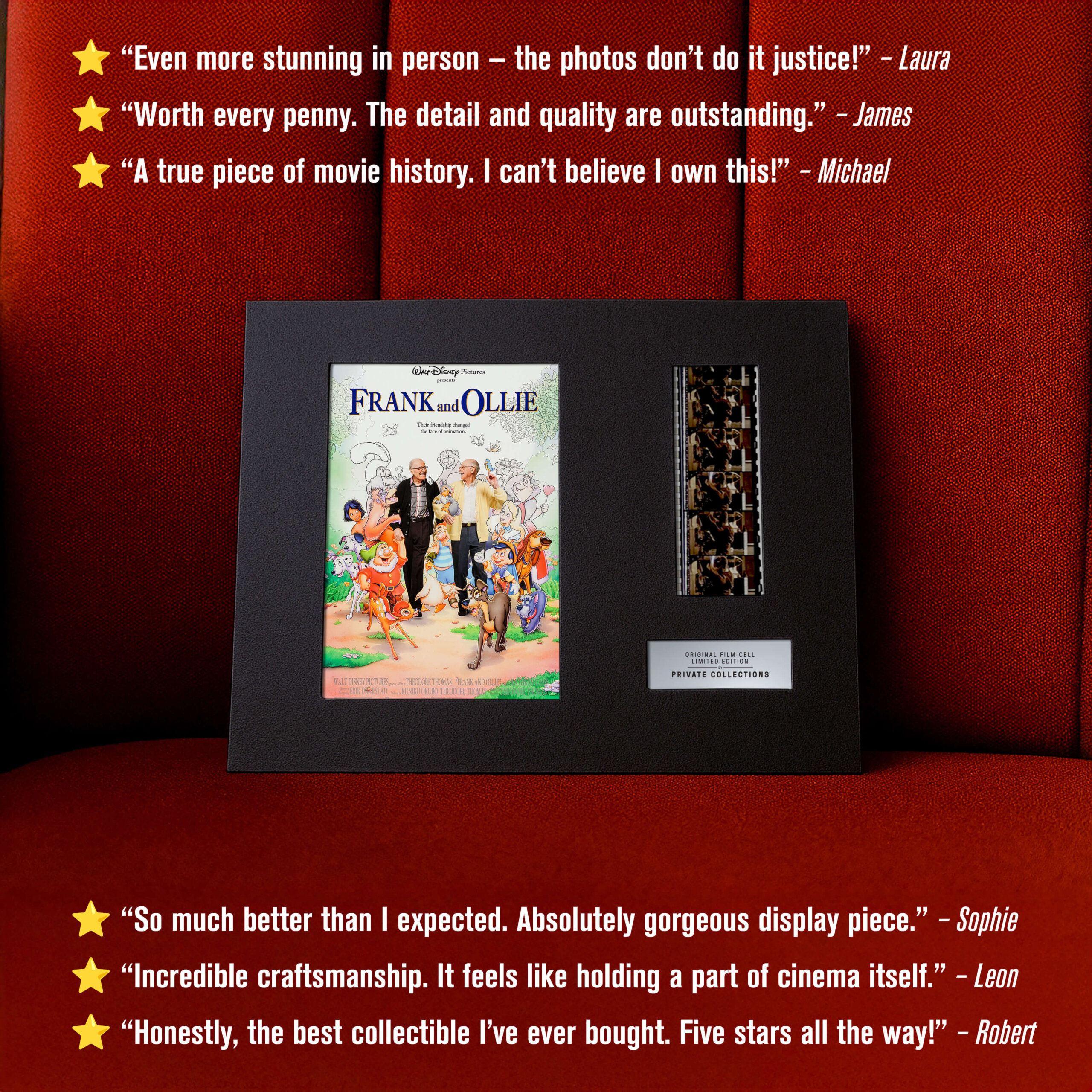 My jsme některé z nich zachránili ze soukromých sbírek a archivů — a dáváme jim nový život. Každý originální filmový pásek je ručně vybraný a pečlivě zarámovaný k vystavení. Není to jen sběratelský kousek. Je to skutečný artefakt filmové historie.