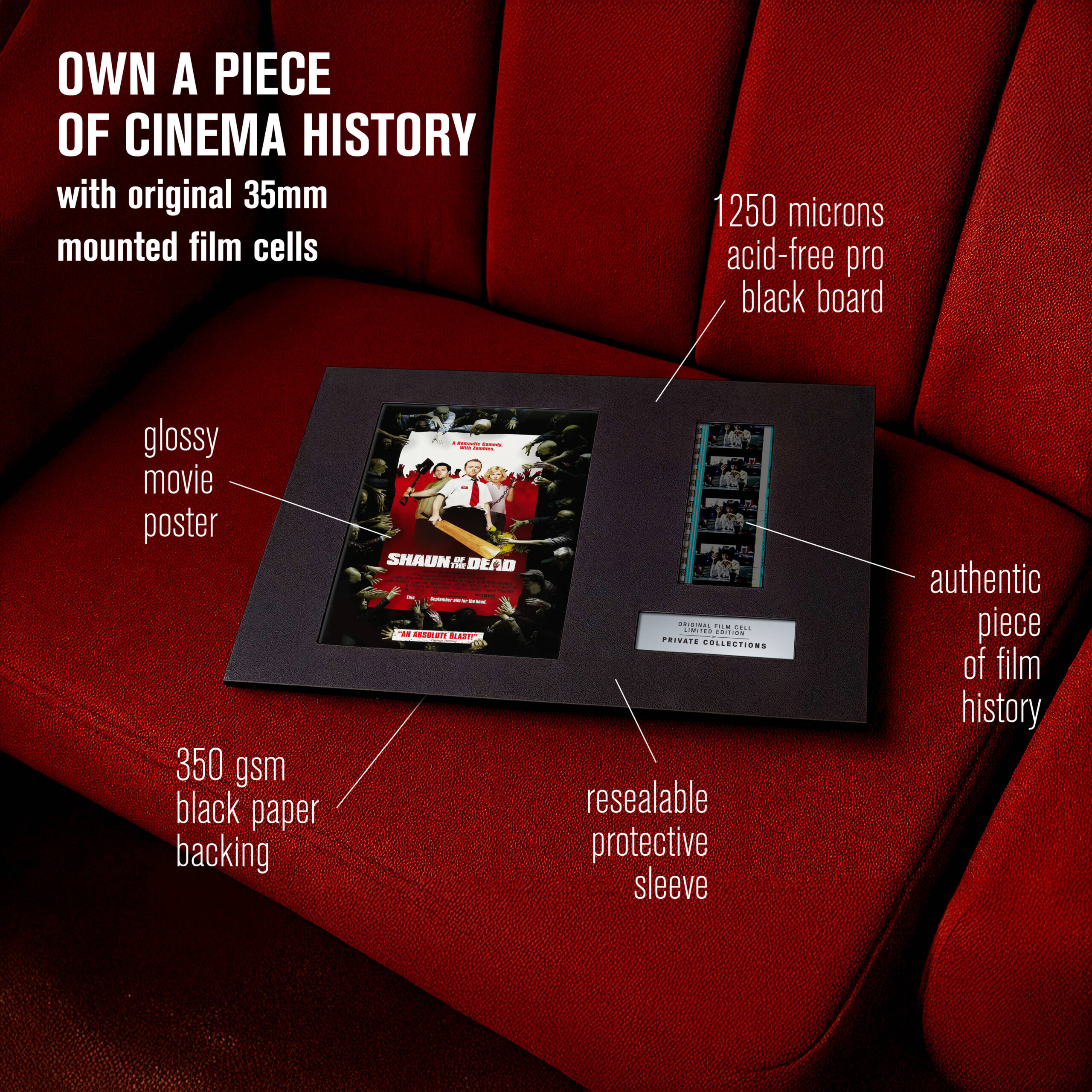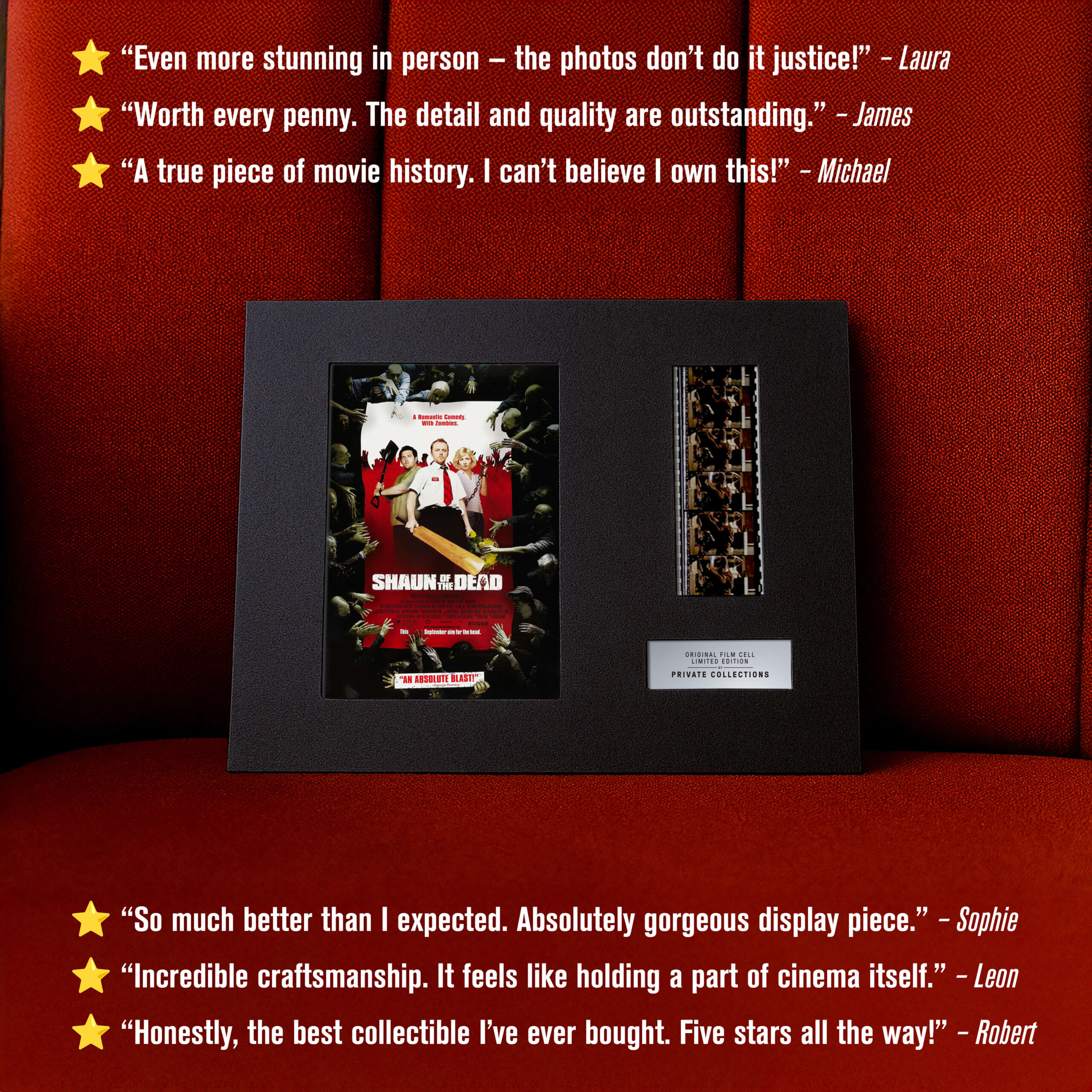 My jsme některé z nich zachránili ze soukromých sbírek a archivů — a dáváme jim nový život. Každý originální filmový pásek je ručně vybraný a pečlivě zarámovaný k vystavení. Není to jen sběratelský kousek. Je to skutečný artefakt filmové historie.