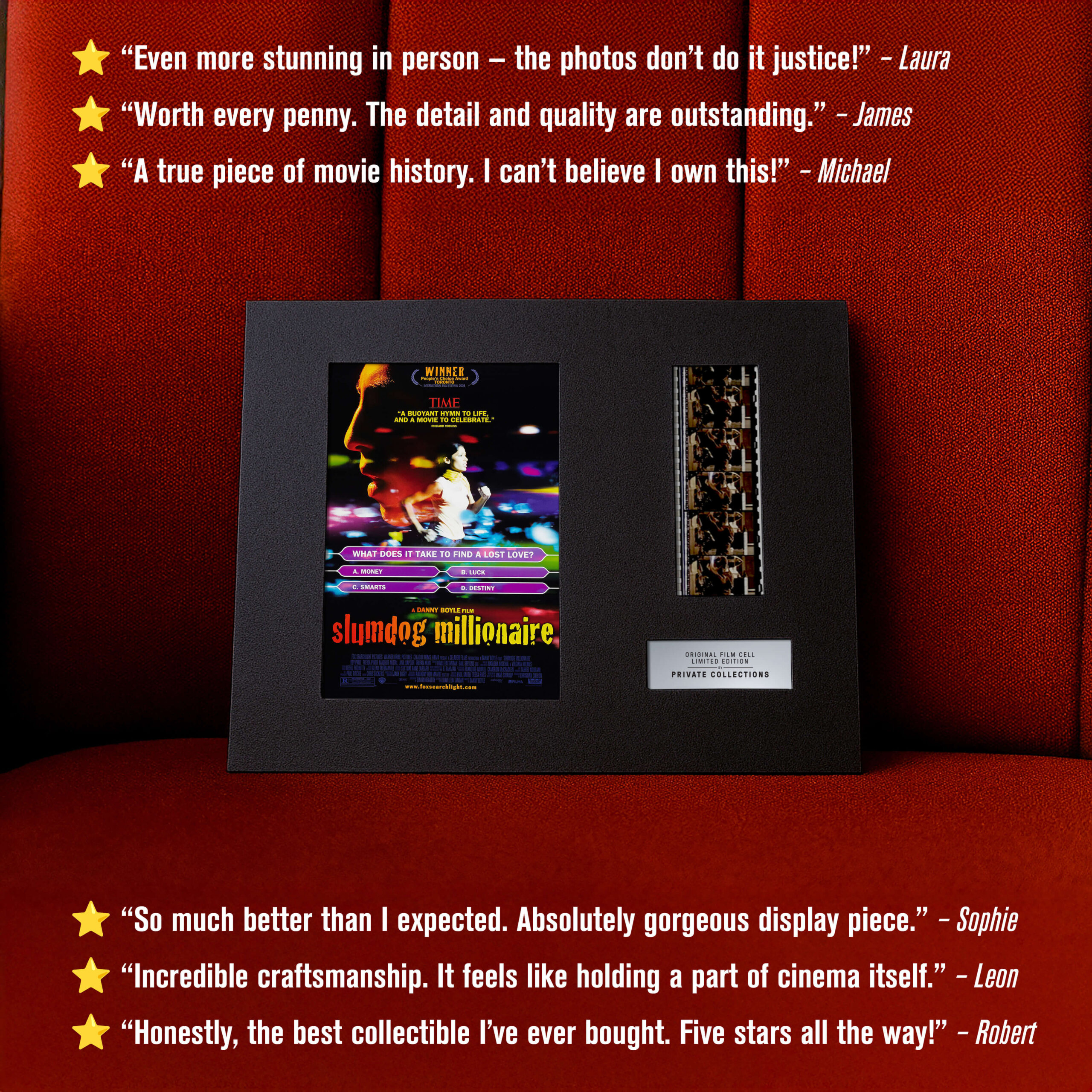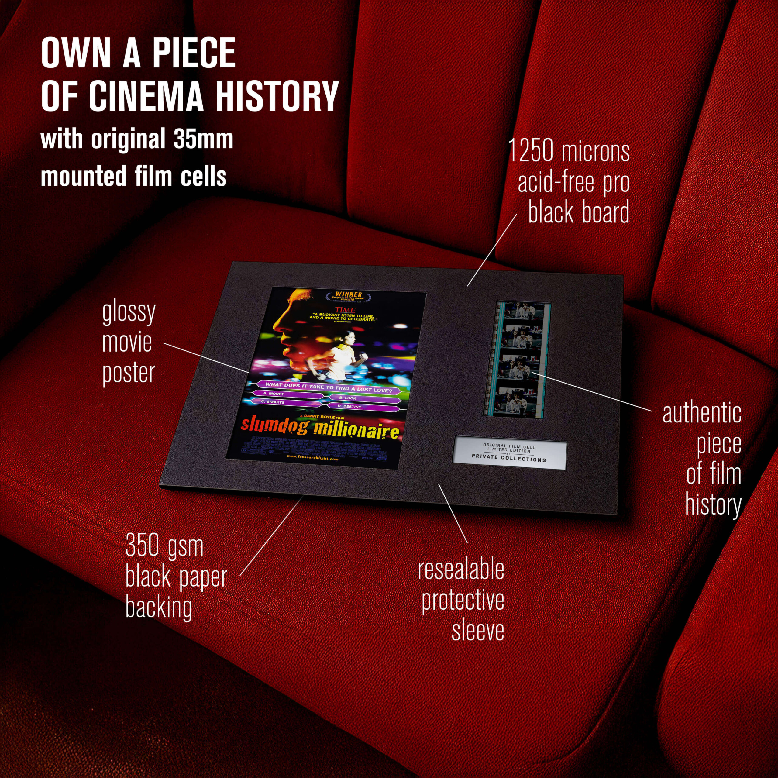 My jsme některé z nich zachránili ze soukromých sbírek a archivů — a dáváme jim nový život. Každý originální filmový pásek je ručně vybraný a pečlivě zarámovaný k vystavení. Není to jen sběratelský kousek. Je to skutečný artefakt filmové historie.