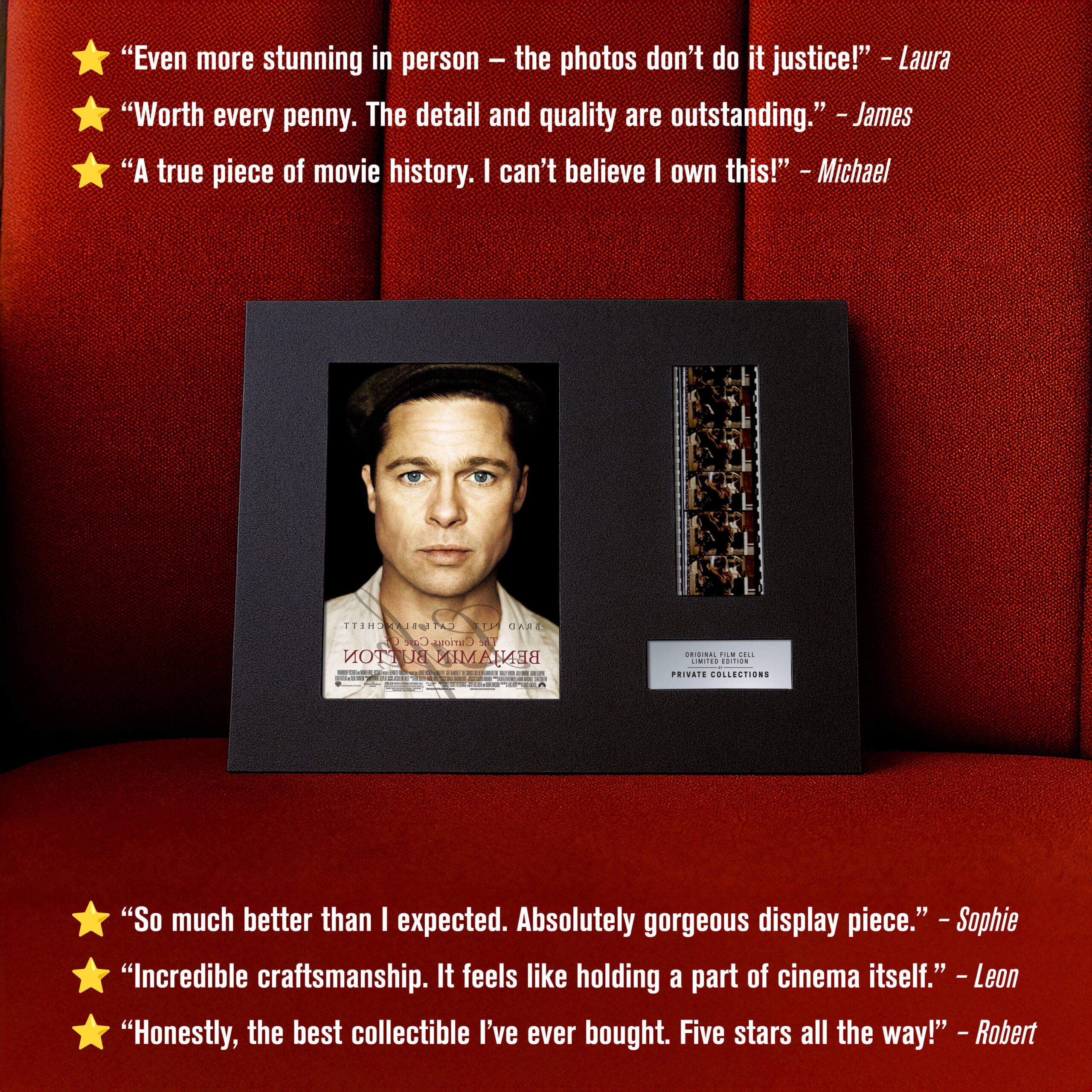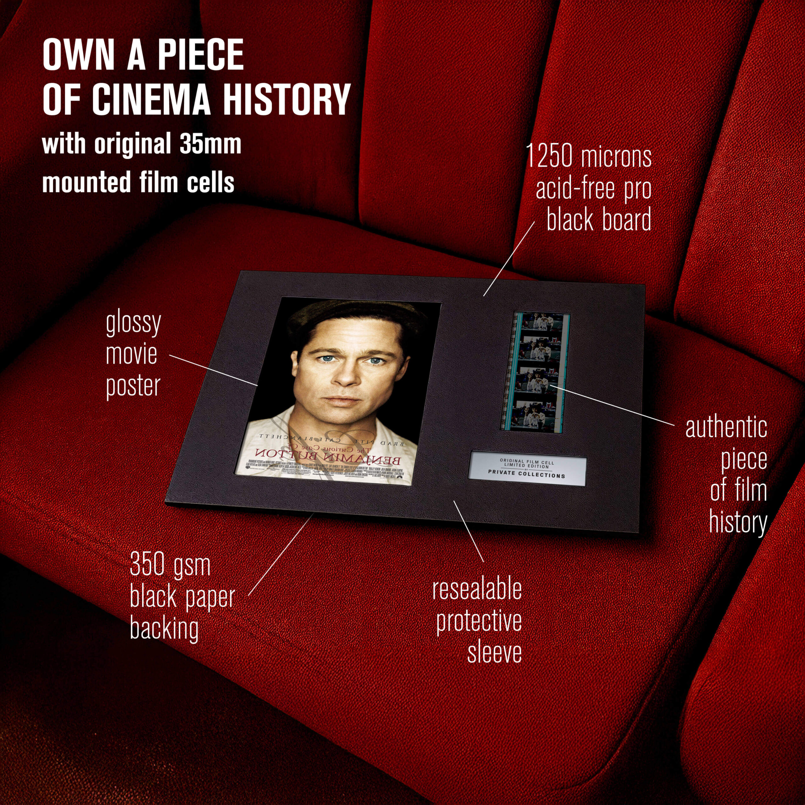 My jsme některé z nich zachránili ze soukromých sbírek a archivů — a dáváme jim nový život. Každý originální filmový pásek je ručně vybraný a pečlivě zarámovaný k vystavení. Není to jen sběratelský kousek. Je to skutečný artefakt filmové historie.
