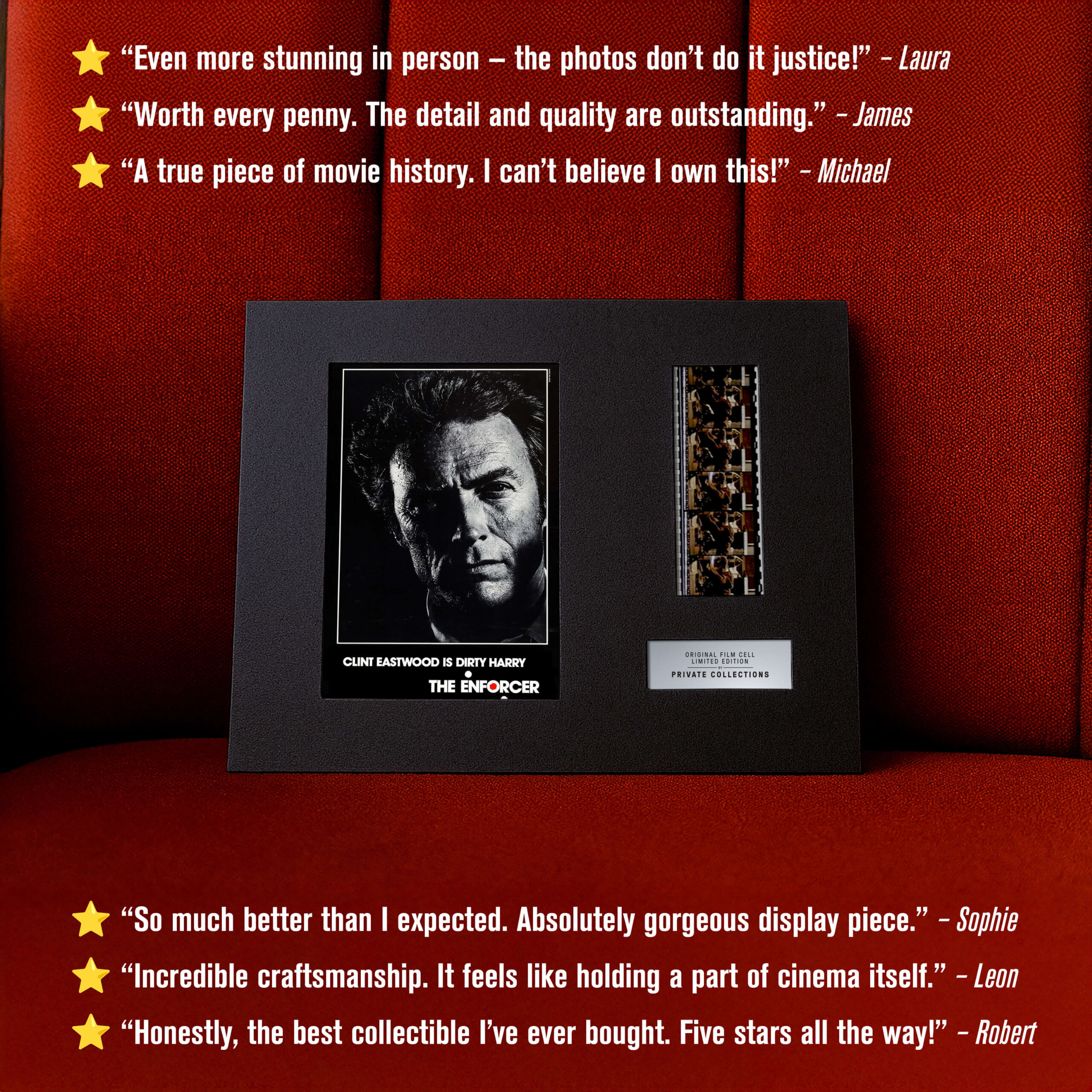 My jsme některé z nich zachránili ze soukromých sbírek a archivů — a dáváme jim nový život. Každý originální filmový pásek je ručně vybraný a pečlivě zarámovaný k vystavení. Není to jen sběratelský kousek. Je to skutečný artefakt filmové historie.