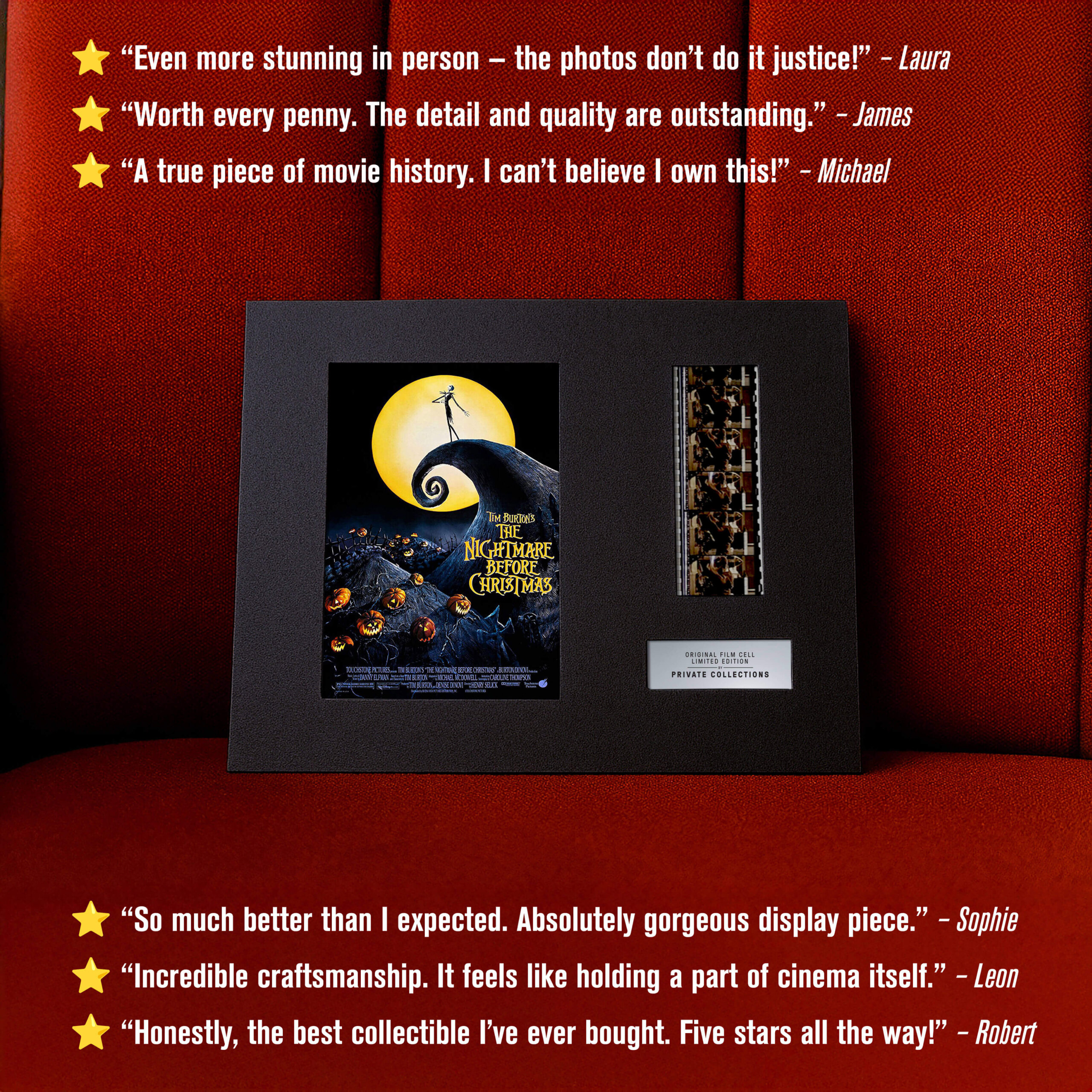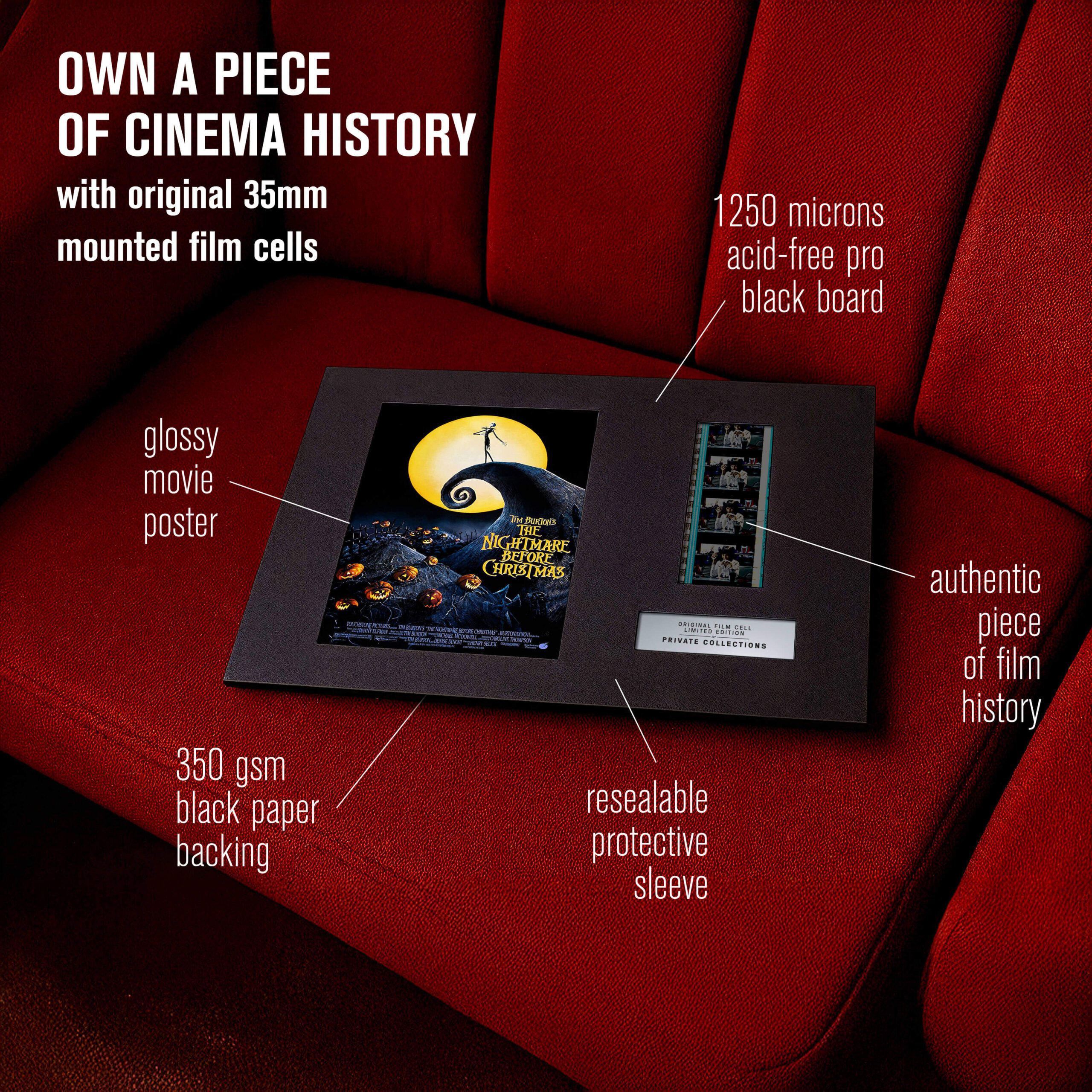 My jsme některé z nich zachránili ze soukromých sbírek a archivů — a dáváme jim nový život. Každý originální filmový pásek je ručně vybraný a pečlivě zarámovaný k vystavení. Není to jen sběratelský kousek. Je to skutečný artefakt filmové historie.